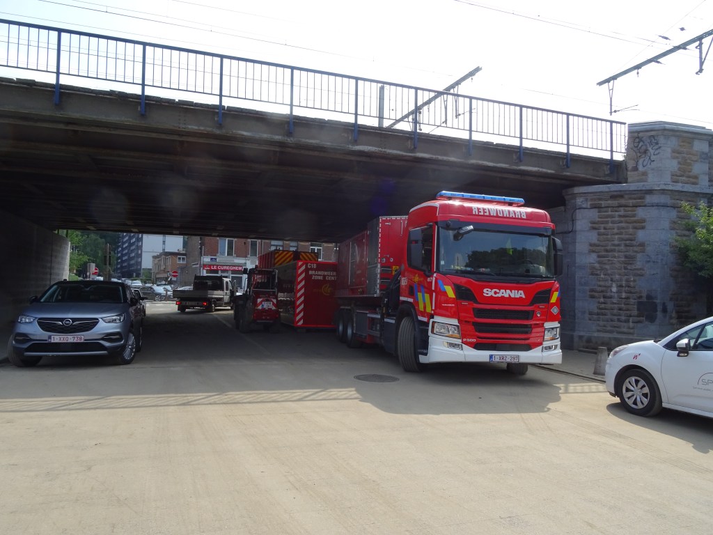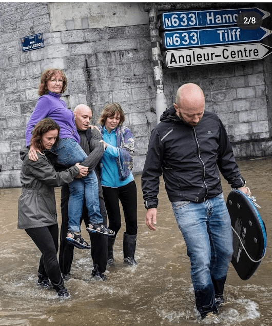 Sau một đêm ngủ, sáng dậy thấy lạ là điện bị ngắt khi mở máy pha café nên mở cửa ra ngoài xem sao, thấy hàng xóm đứng ngóng nhìn về con đường ngang bàn tán về vụ đường Kimkenpois đâm ngang bị nước tràn vào từ canal de L’Ourthe, là con sông đào có đập chắn để điều hòa dòng nước. Nước ngập gần đến lề đường bên tiệm café Code Bar, siêu thị lại không mở cửa vì diện bị ngắt.