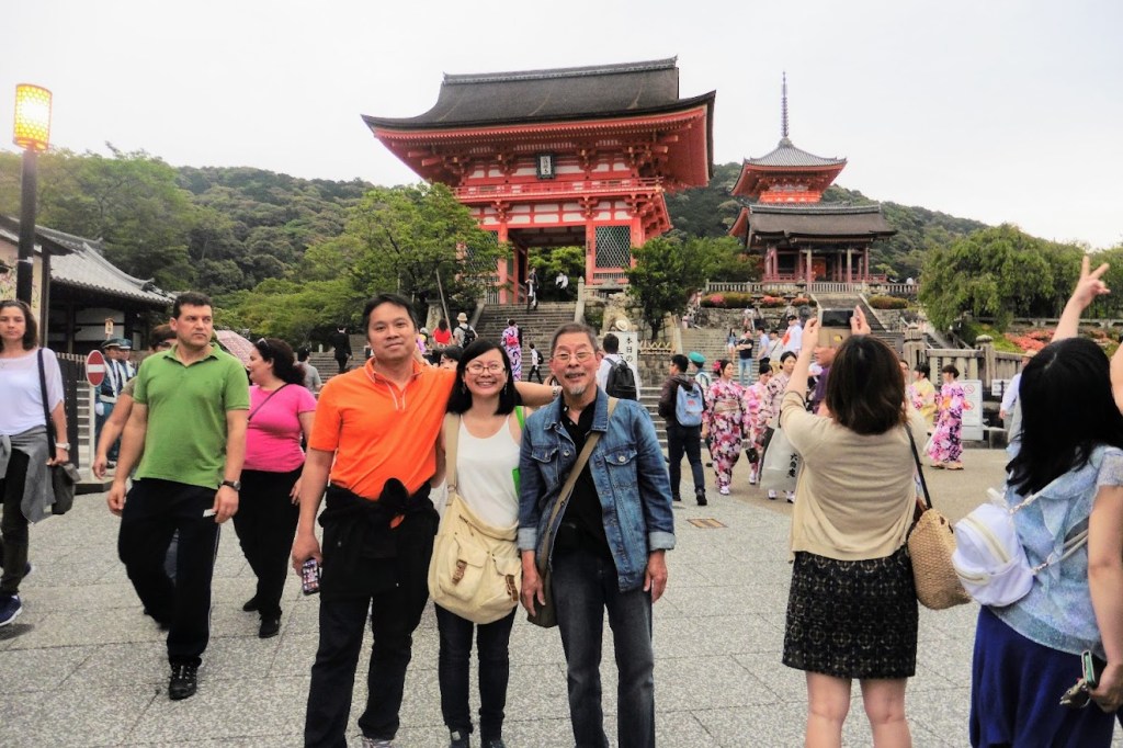 Ba cha con trước khi trở lại Tokyo có tấm ảnh lưu niệm trước ngôi chùa lớn ở Kyoto