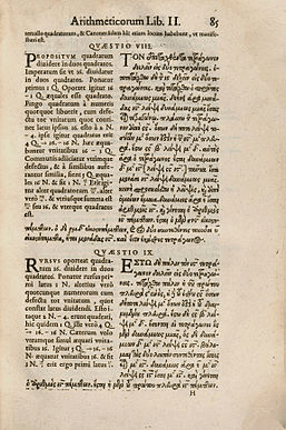 Bên phải là phần lề giấy nổi tiếng của Fermat, nơi theo ông, không đủ viết chứng minh định lý đầy đủ vào