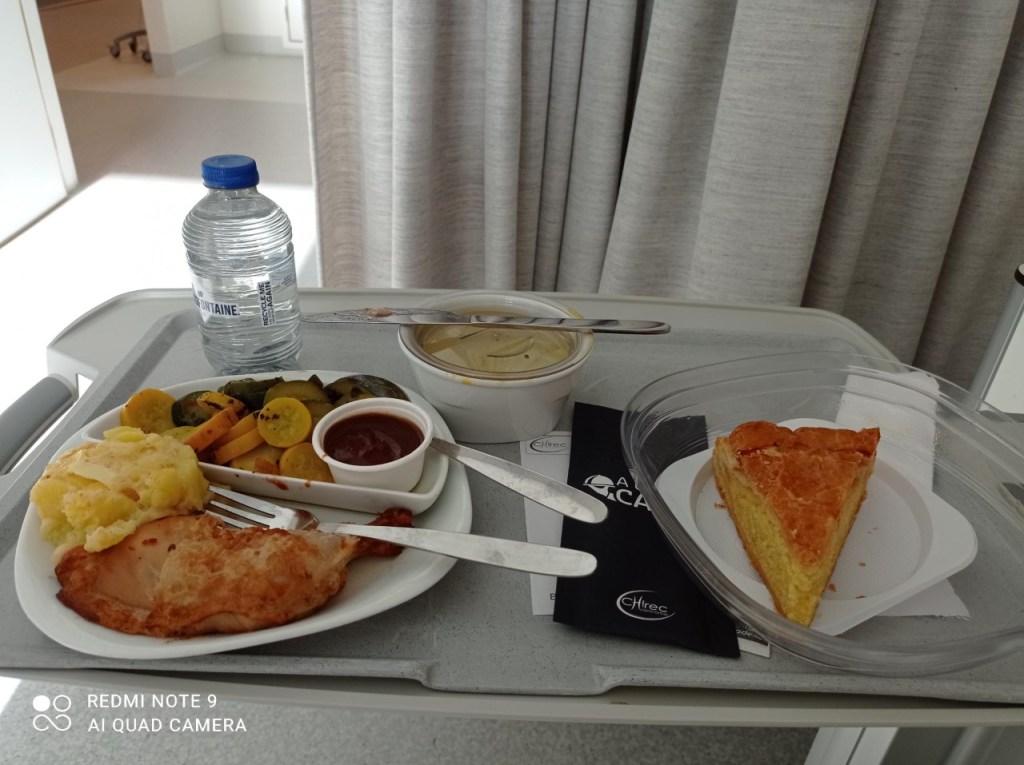 Đầu băng bó chỉ thấy một ống cao su gắn vào chỗ mổ và thông vào một bình plastic có dung tích 150 Cc, bình này nhìn hình thù như quả lựu đạn được treo bên thái dương và máu trong chỗ mổ được rỉ ra. Ngày hôm sau, chủ nhật 9/1/2022, cũng có đến 2 bình chứa máu tràn ra và tôi được đưa đi làm scan lần thứ hai. Mọi việc êm đẹp, nhưng vẫn phải nằm im một chỗ cho đến ngày thứ hai, khi bs kiểm soát lại mới cho phép quăng bỏ trái « lựu đạn máu » ra khỏi trán, lúc đó tôi mới được phép ngồi dậy tự bước ra khỏi giường. Y tá, bác sĩ thăm viếng liên tục còn cả Kiné đến xoa bóp, vận động. Sáng nay, thứ ba 11/1/2022 sau khi bác sĩ giải phẫu kiểm soát lần cuối và Ara được phép xuất viện với cái hẹn ngày tái khám, làm scan lần thứ ba .