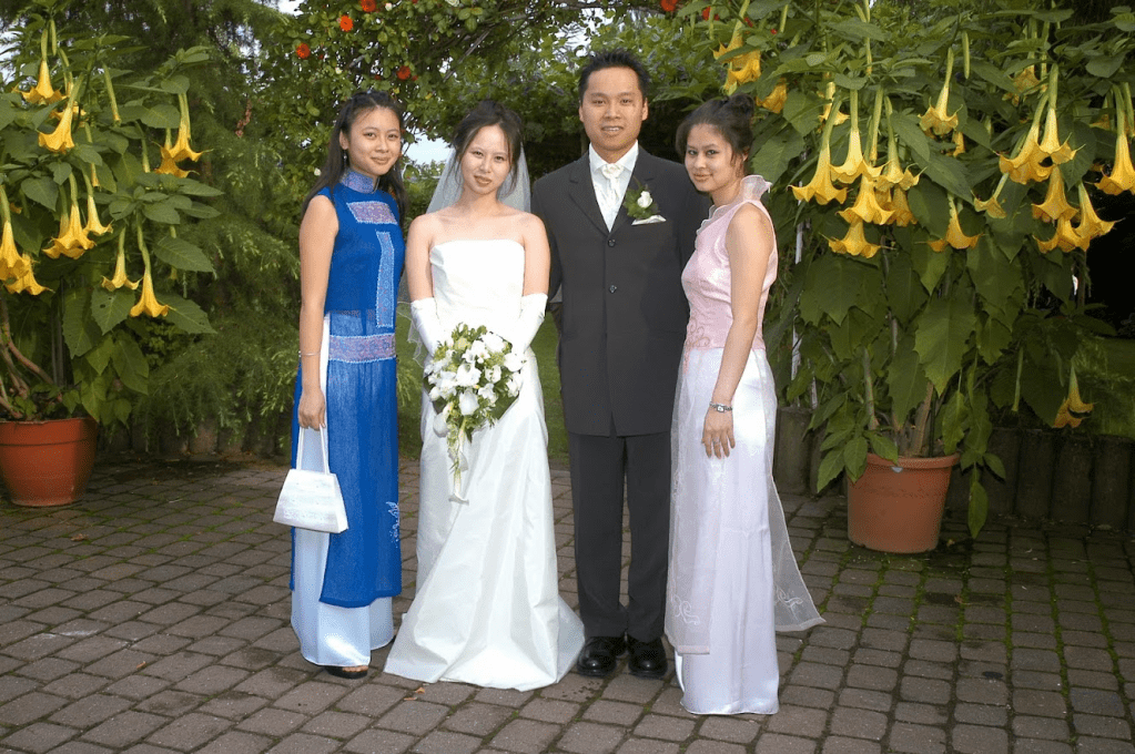 Phương Uyên và Phương Thư bên chị hai Phương Anh trong ngày cưới.